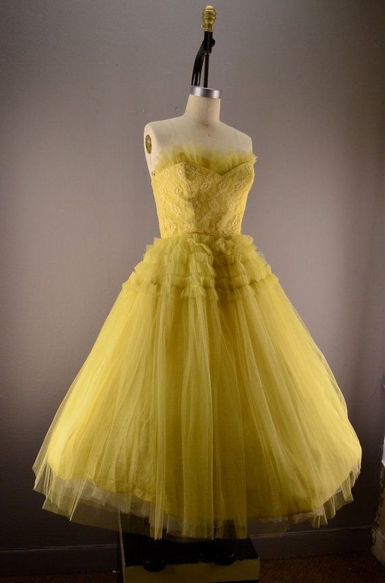 Vintage Dresses, Yellow Prom Dress, Cute