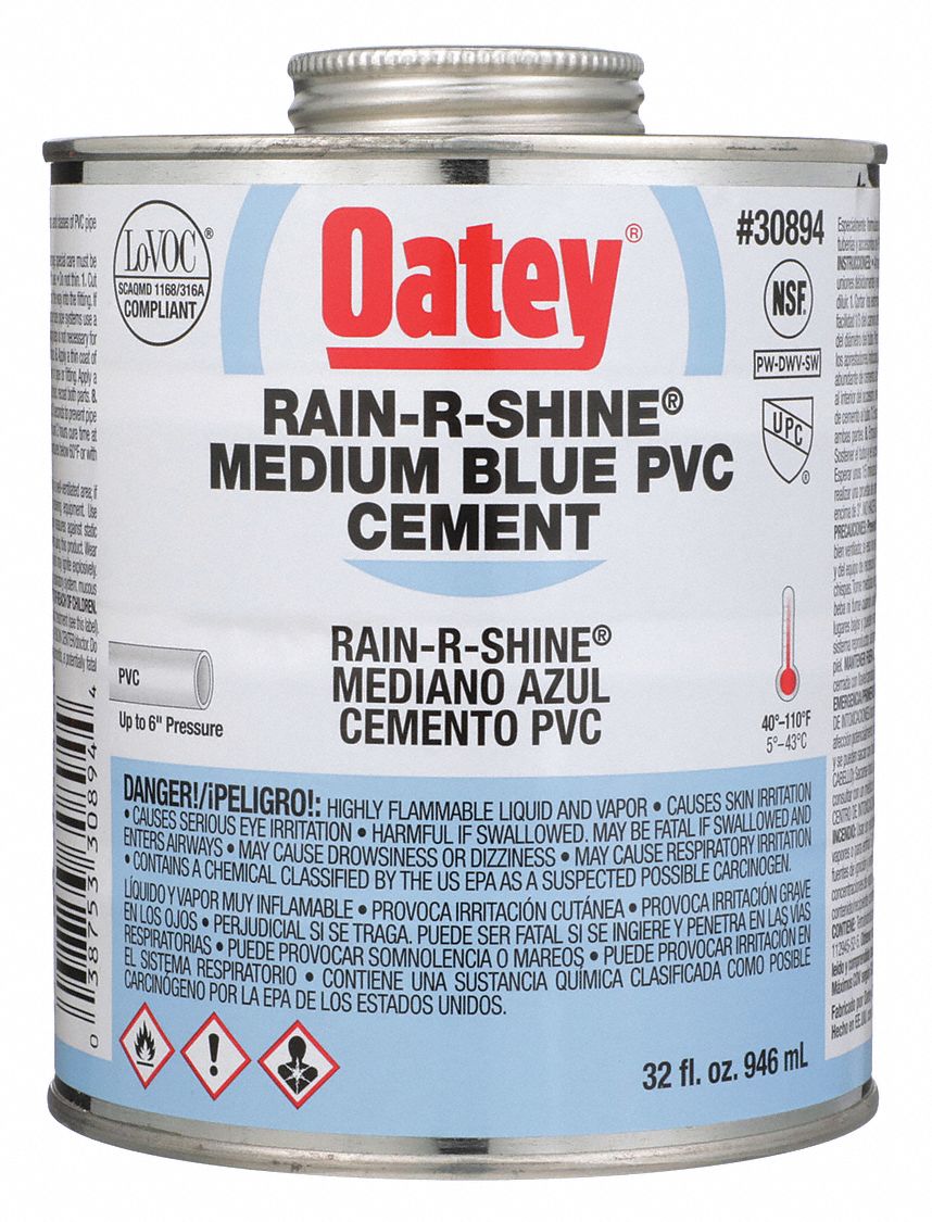 OATEY Blue PVC Cement, PVC, Size 32 oz, For Use With PVC Pipe and