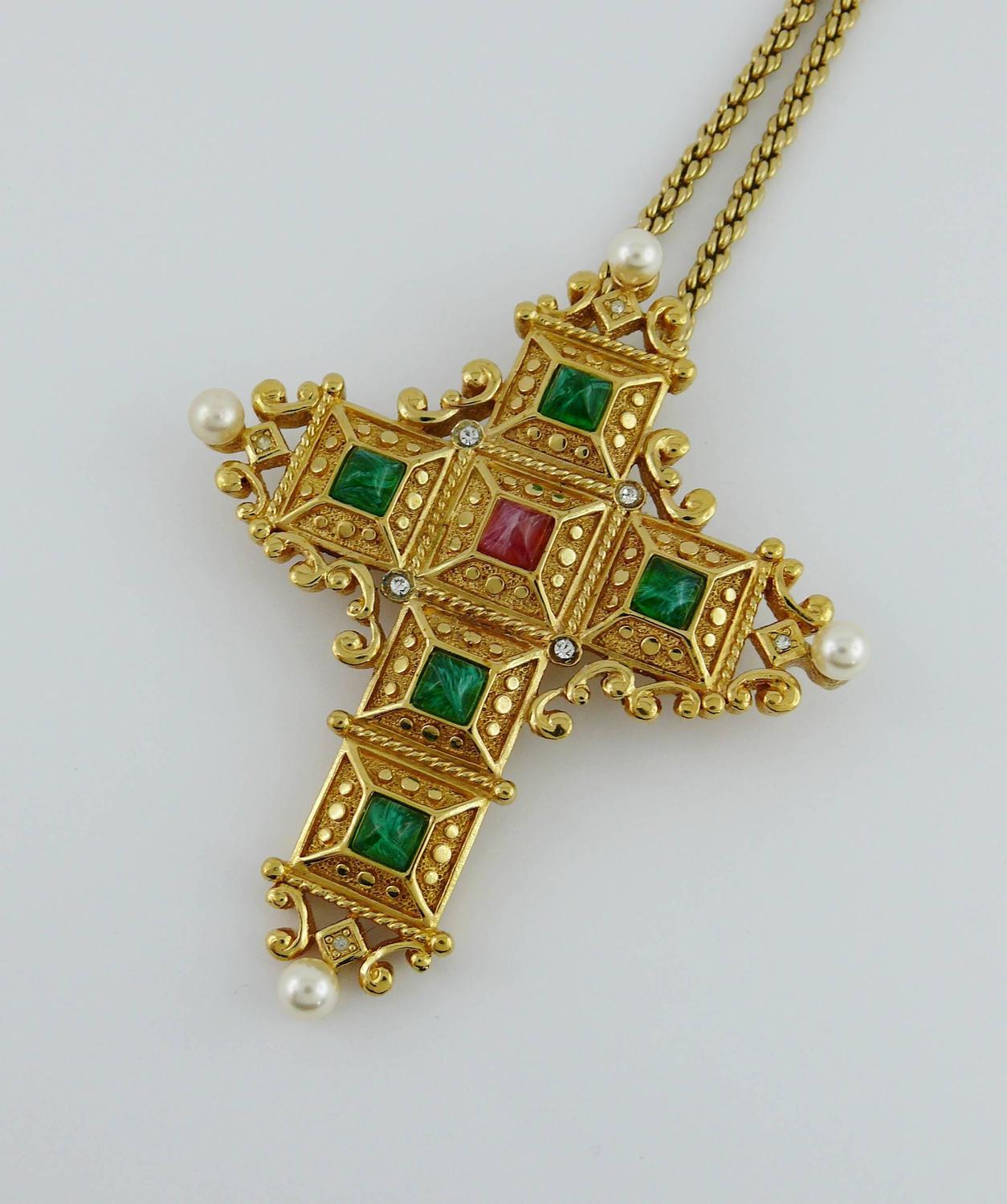 Christian Dior Vintage Jewelled Cross Pendant Necklace at 1stDibs Cross Pendant Dior christian dior vintage openwork gold tone cross pendant necklace featuring green/red glass cabochons and clear crystal embellishement. adorn your neckline with dior's designer necklaces for women, showcasing the artistry of fine jewelry and dior's timeless. requiring meticulous work and delicate craftsmanship, dior necklaces and pendants enhance the neckline and complete your. dior luxury necklaces for women. Cross Pendant Dior.
