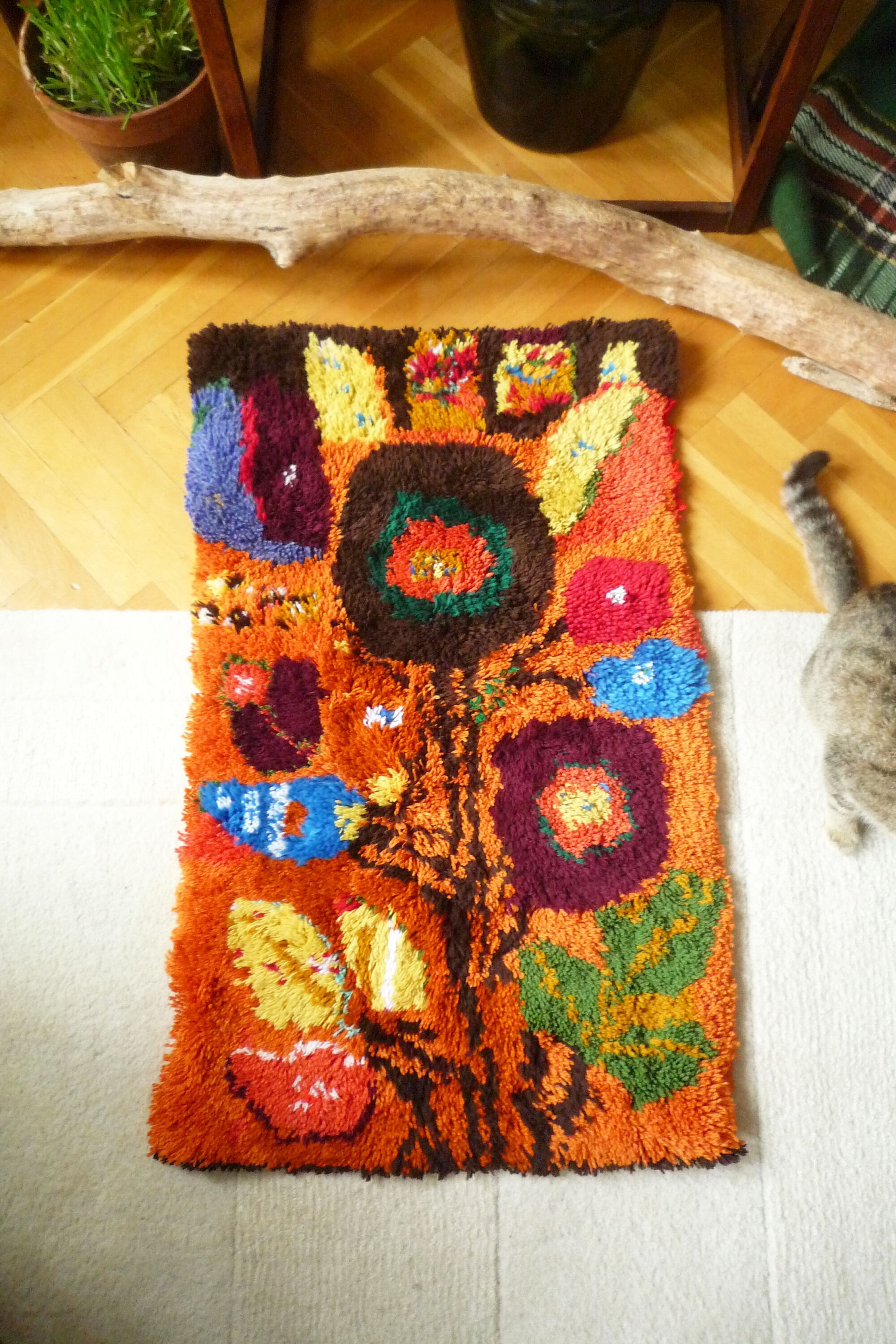 Mid Century Modern 70s Floral Rya Rug Tapestry Wool Wall Hanging Boho