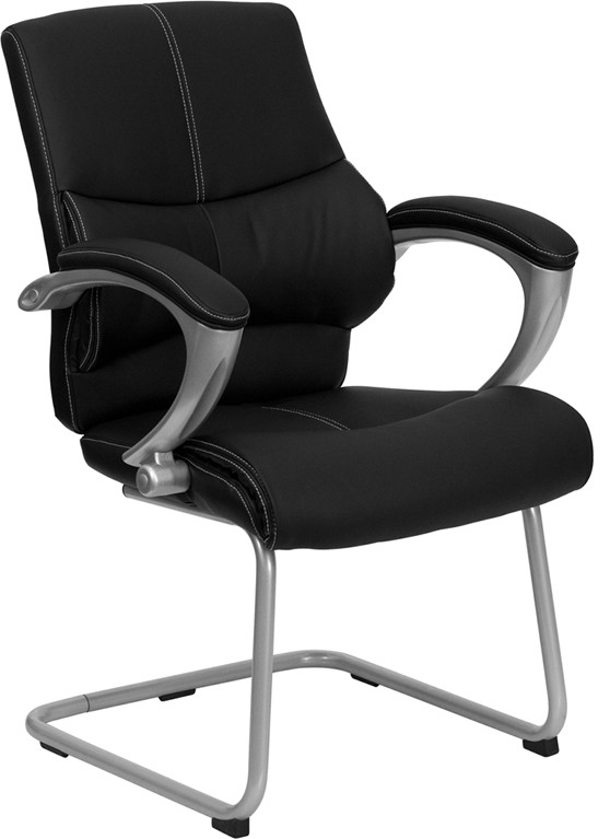 Black Leather Executive Side Reception Chair with Silver Sled Base
