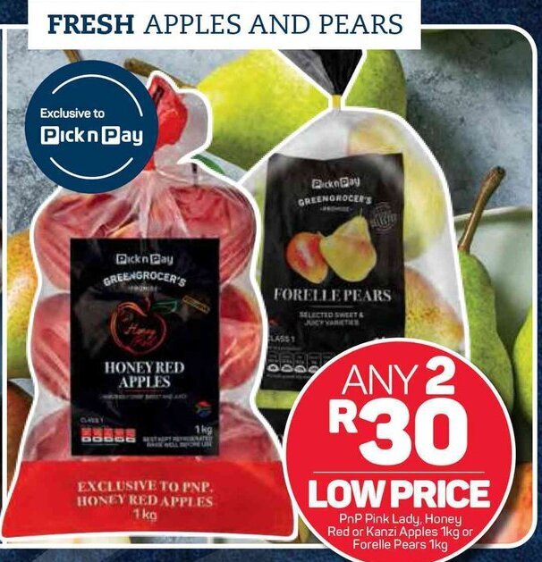 PnP Pink Lady Honey Red or Kanzi Apples 1kg or Forelle Pears 1kg offer