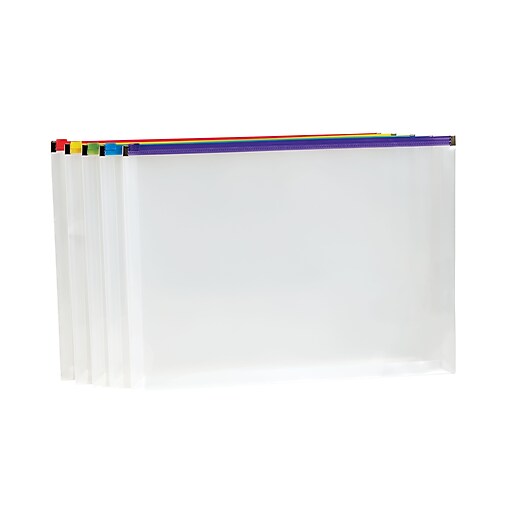 Keep your papers and memos safe. Jam paper® clear plastic legal booklet sized envelopes with zipper closures are 9.75 x 14.5 in size and come in packs of 12. Each envelope has a plastic zipper closure with metal ends. The dimension of this envelope is legal size. Designed to hold, carry and protect important documents. Give important documents durable protection. This staples zip envelope expands up to 1 inch and holds up to 200 sheets of. Zip envelopes feature clear poly sides and assorted color zip. Durable, waterproof and resistant to rubbing. Made from smooth polypropylene plastic for durability.