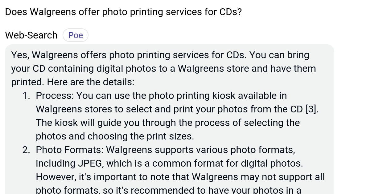 Does Walgreens offer photo printing services for CDs? Poe