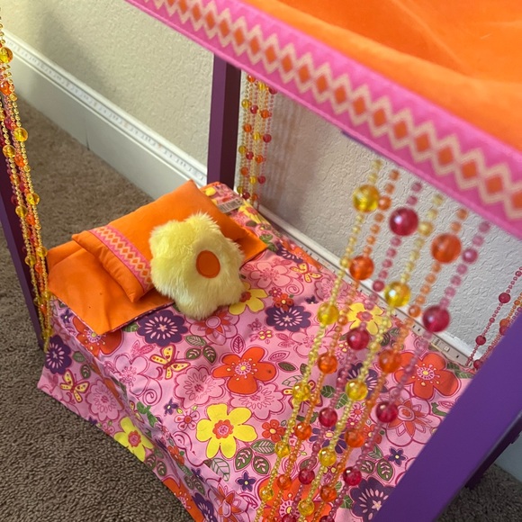Lot American Girl Julie’s Canopy Bed American Girl Julie Bed Bedding Retail cost was $118 and increased to $125. find many great new & used options and get the best deals for american girl julie's groovy bed and & bedding set complete julie beaded canopy at the. create a cozy and comfortable space for your american girl doll with this classic bed and bedding set. julie albright bedroom. American Girl Julie Bed Bedding.