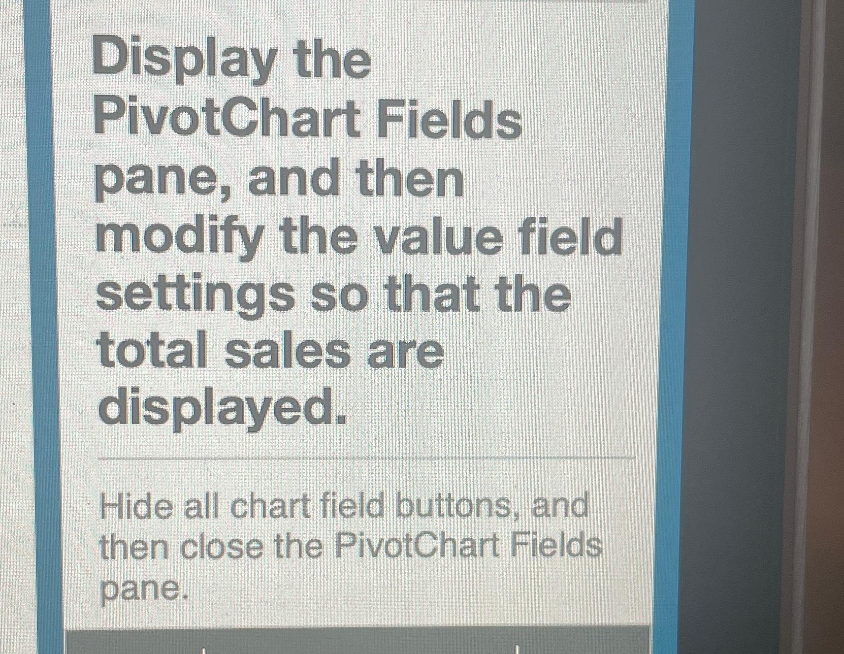 Solved Display the PivotChart Fields pane, and then modify