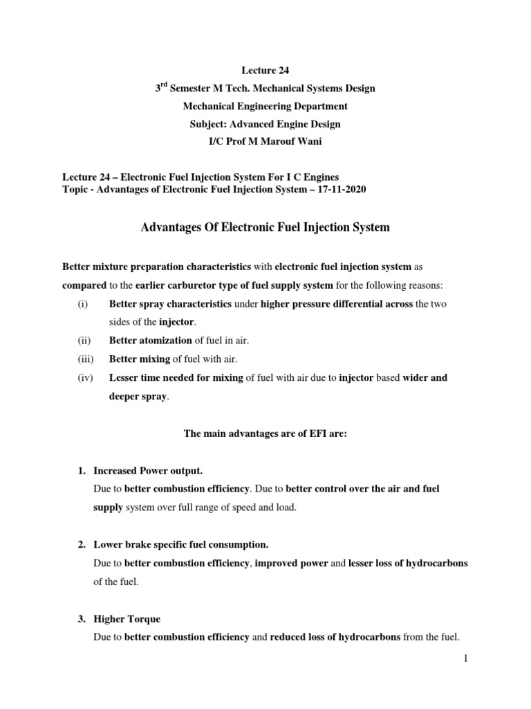 MSD 302 Lecture 24 Advantages of Electronic Fuel Injection System For Electronic Fuel Injection System Research Paper Pdf In accordance with strict emission norms, the depletion of fossil fuels requires a fuel injection system that is efficient, responsive, and adaptable to various locally available fuels. The paper deals with research results of electronic fuel system injection (fsi) and its possible measurement for diagnostic analysis. “electronic fuel injection (efi)” system use engine sensors, a pc and solenoid worked fuel. Electronic Fuel Injection System Research Paper Pdf.