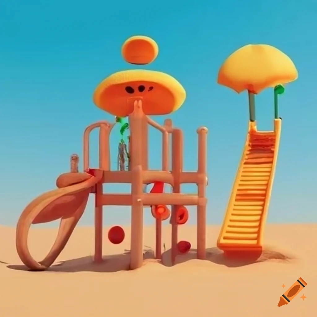 Colorful surreal playground with sand and swings on Craiyon