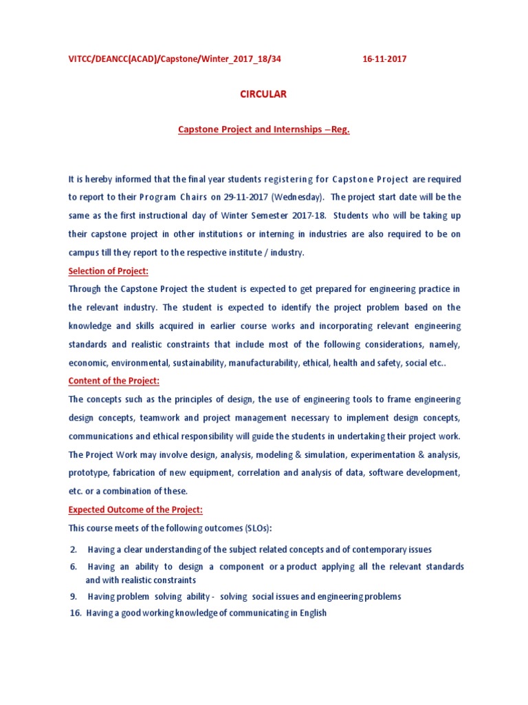 Circular On Capstone Project and Internships PDF Engineering Thesis