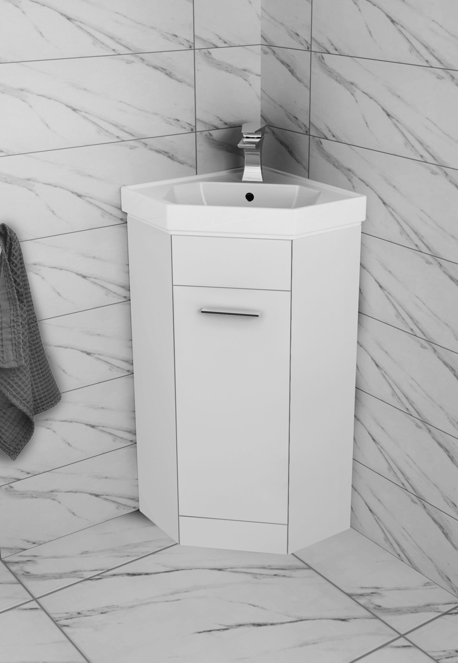 Wickes Porto White Gloss Corner Freestanding Vanity Unit with Basin 840 x 420mm Wickes.co.uk