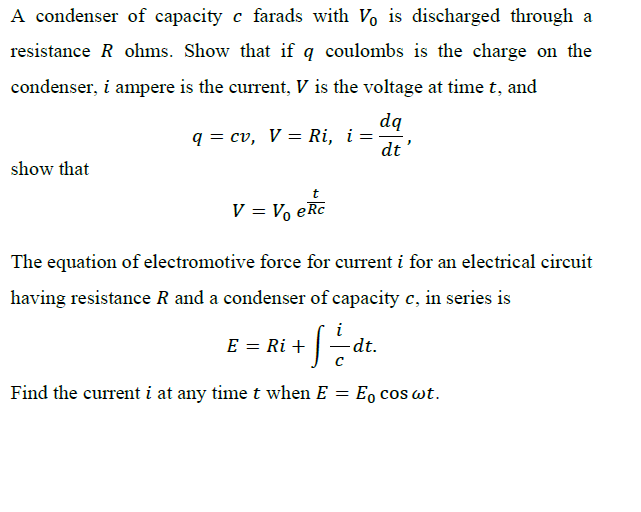 Solved A condenser of capacity c farads with V, is