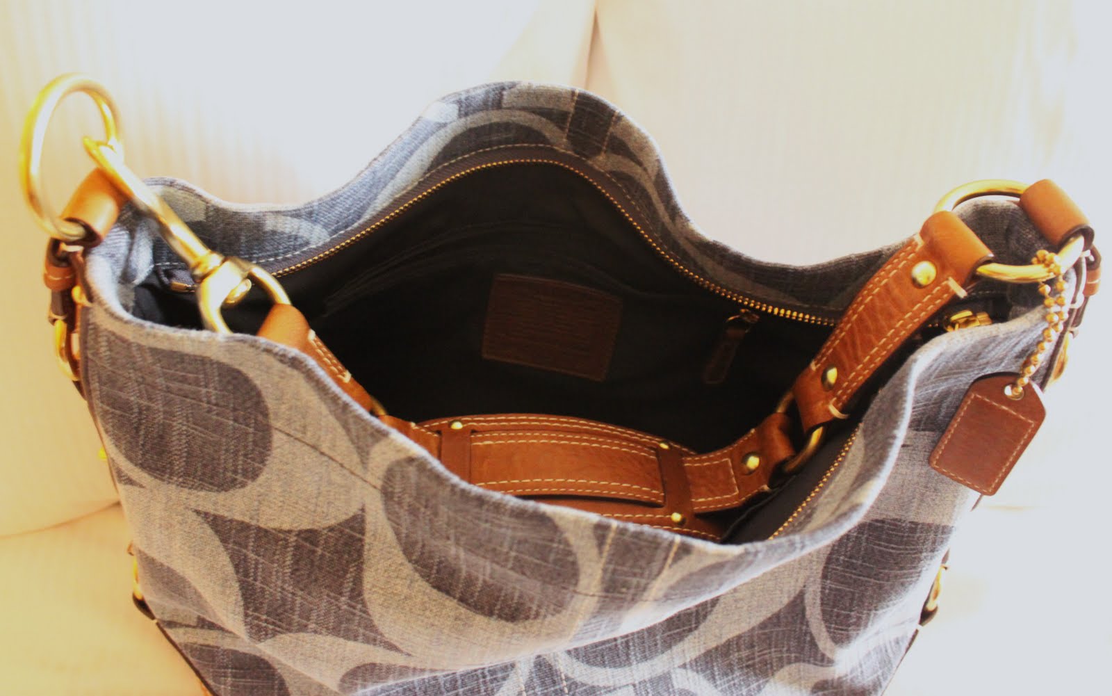 Say SALE Coach Carly Signature Cotton Denim Handbag