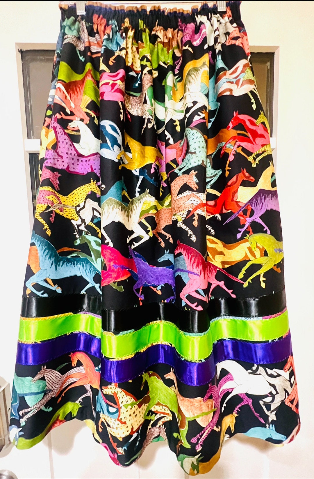 Cotton Ribbon Skirts Womens Ribbon Skirts Horse Ribbon Etsy Horse Ribbon Skirt Enjoy this modern contemporary skirt with your daily life. Wear it daily, wear it to work, wear it to functions, wear it to galas,. This pin was discovered by judy carter. Discover (and save!) your own pins on pinterest The waist area ( they flare out ) great for dancing and picking. Ribbons are 1 1/2 inches thick. Check out. Horse Ribbon Skirt.