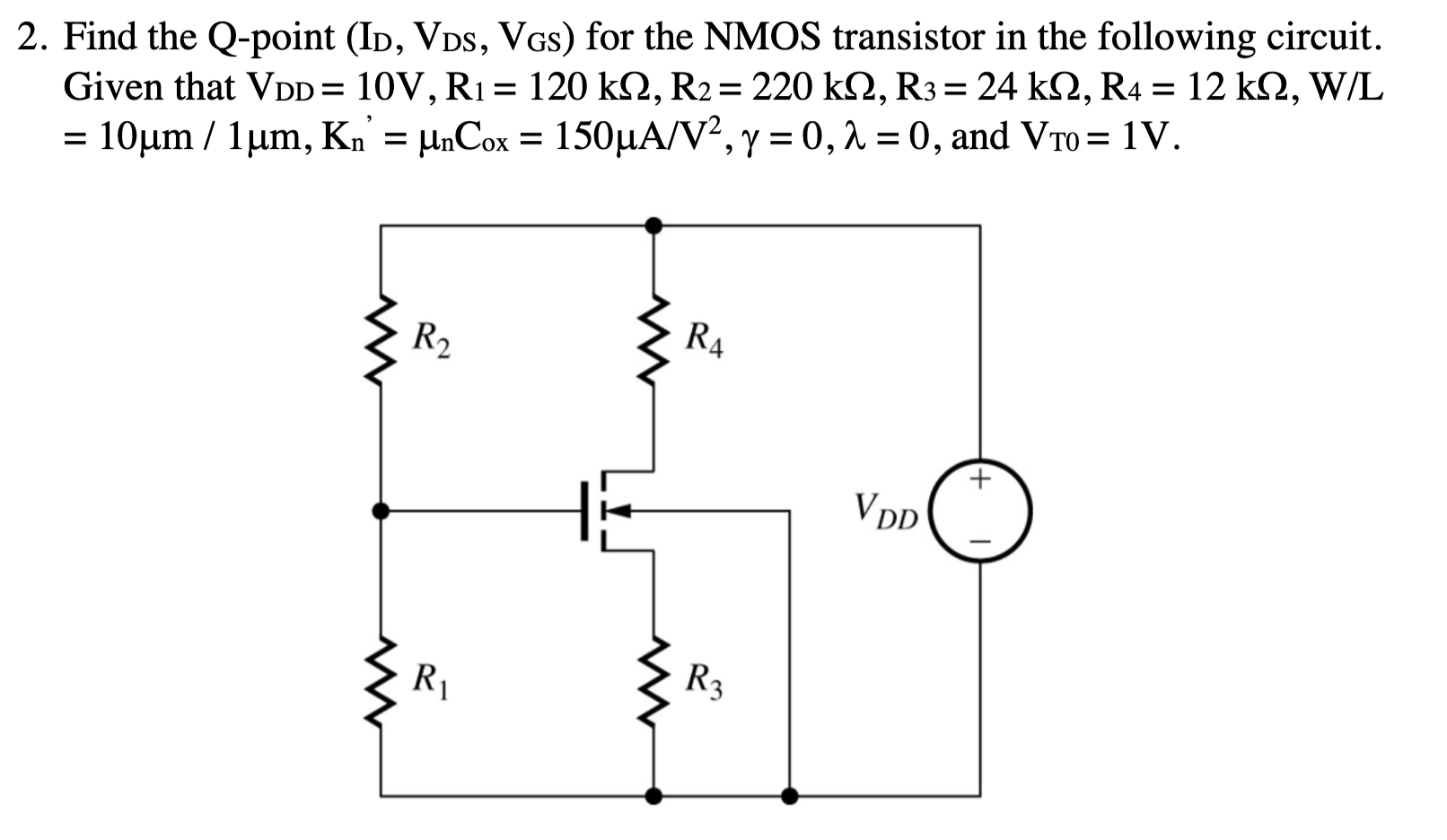 Solved 2. Find the Qpoint (ID, VDS, Vgs) for the NMOS