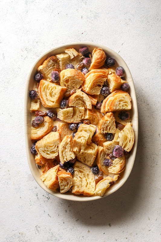 Blueberry raisins croissant bread pudding