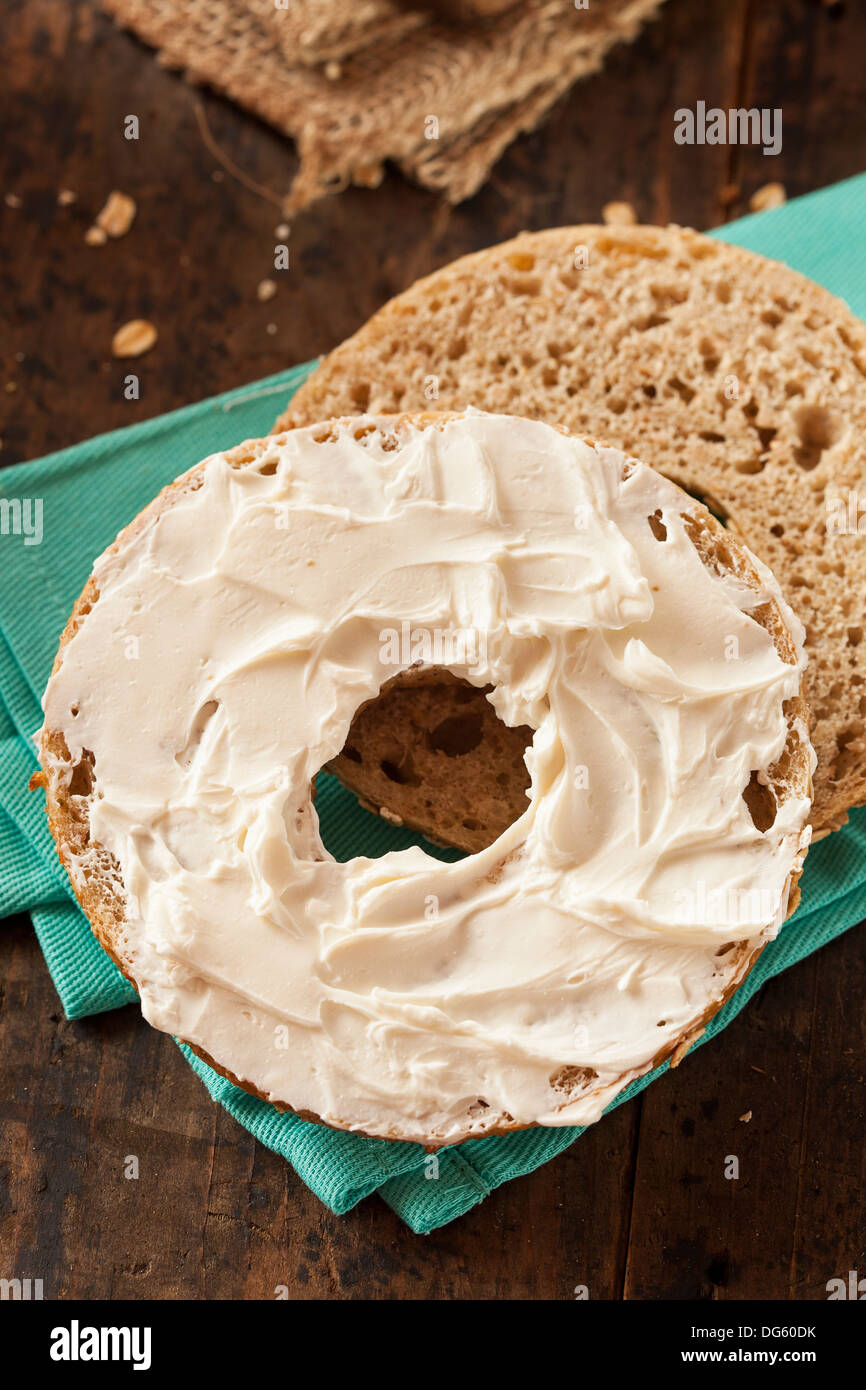 Healthy Organic Whole Grain Bagel with Cream Cheese Stock Photo Alamy