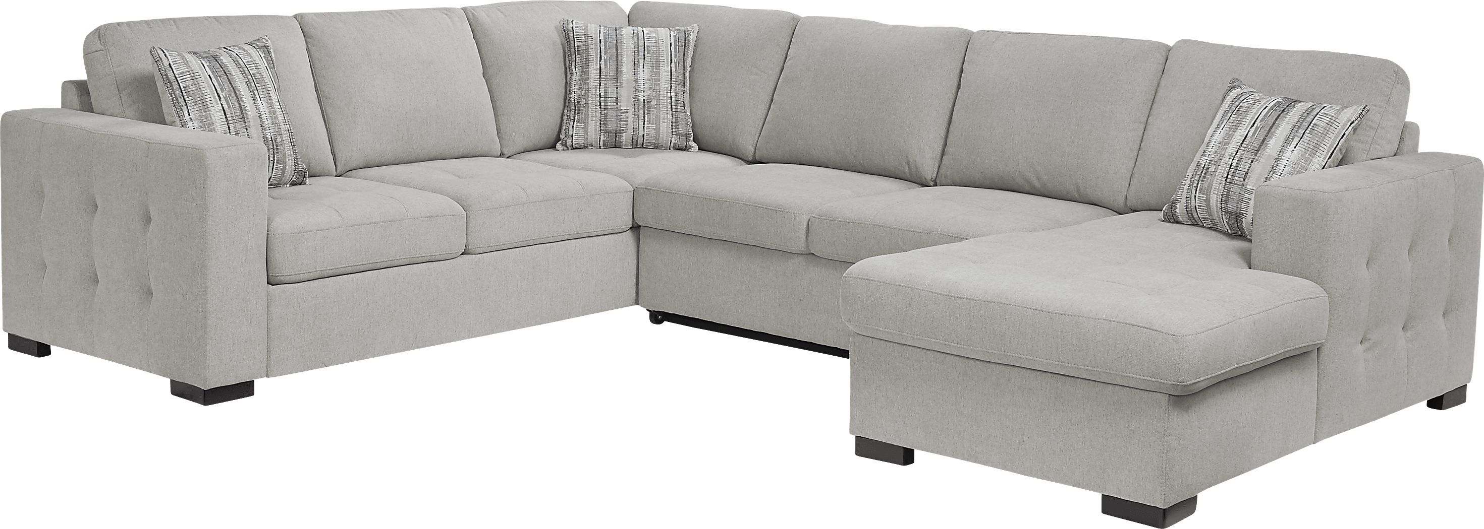 Angelino Heights Gray 3 Pc Sleeper Sectional Rooms To Go Angelino Heights 3 Piece Sectional From Rooms To Go Upholstered in textured woven gray fabric, this contemporary sectional features delicate tufting detailing on the exterior arms and seat. Upholstered in textured woven gray fabric, this contemporary sectional features delicate tufting detailing on the exterior arms and seat. Featuring sectional seating for up to six adults, this versatile sectional includes a fold out queen size sleeper and storage compartment in. Angelino Heights 3 Piece Sectional From Rooms To Go.