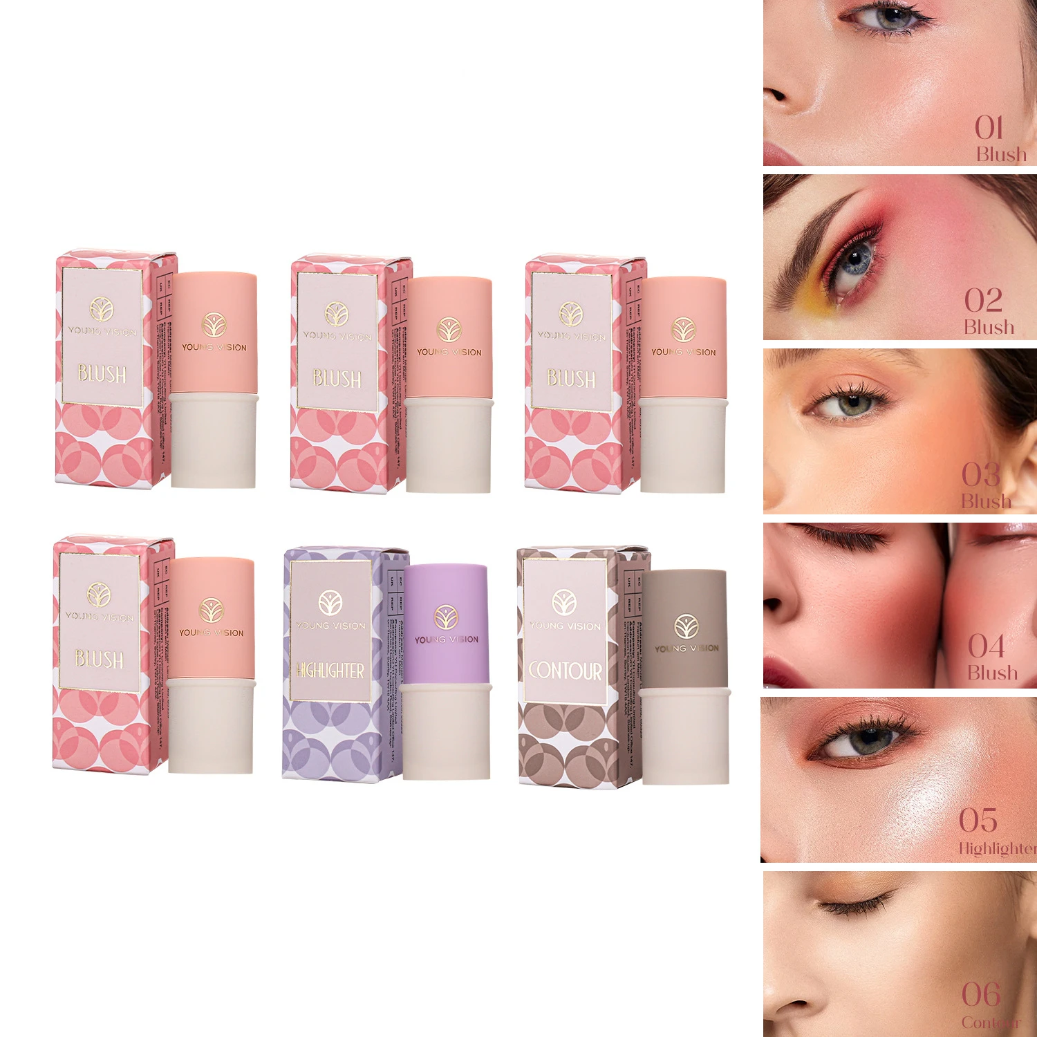 6 Colors Blush Makeup Stick Mineral Powder Red Rouge Lasting Natural