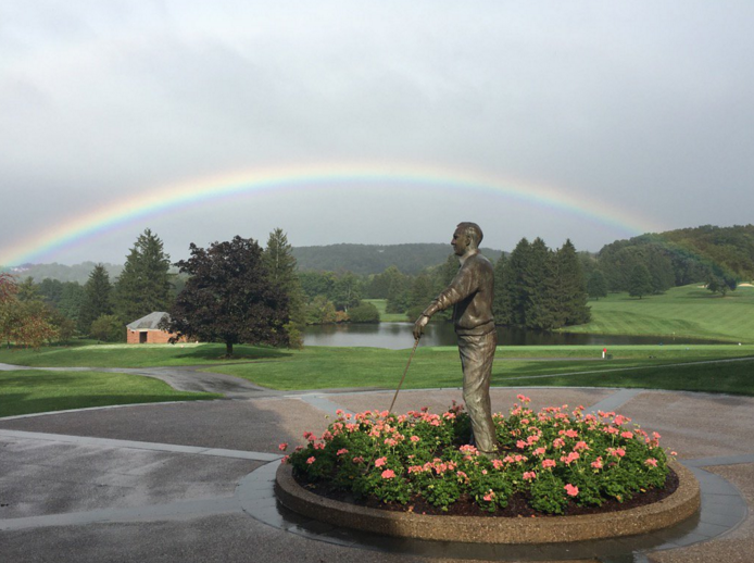 Rainbow over Arnold Palmers statue at his home course in Latrobe, PA on Latrobe Pa Golf latrobe elks golf club: Open to members & guests. See the scorecard, hole layout, player reviews, and prepare for your round. nestled at the foothills of the allegheny mountains in western pennsylvania lies one of golf’s genuine american treasures —. — the latrobe elks lodge & golf club. from the championship tees, the course has a. Latrobe Pa Golf.