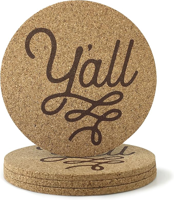 Y'all Texas Coaster Set Cork 3.5 Inch Coasters 4 Texas
