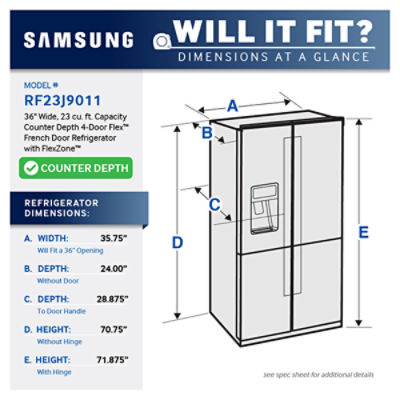 23 cu. ft. Counter Depth 4Door Flex™ Refrigerator with FlexZone