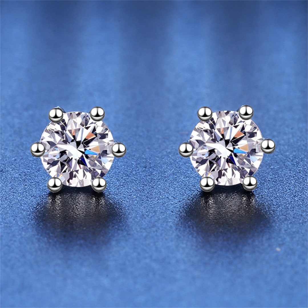 Moissanite Earring Studs Certified D Color Moissanite Etsy