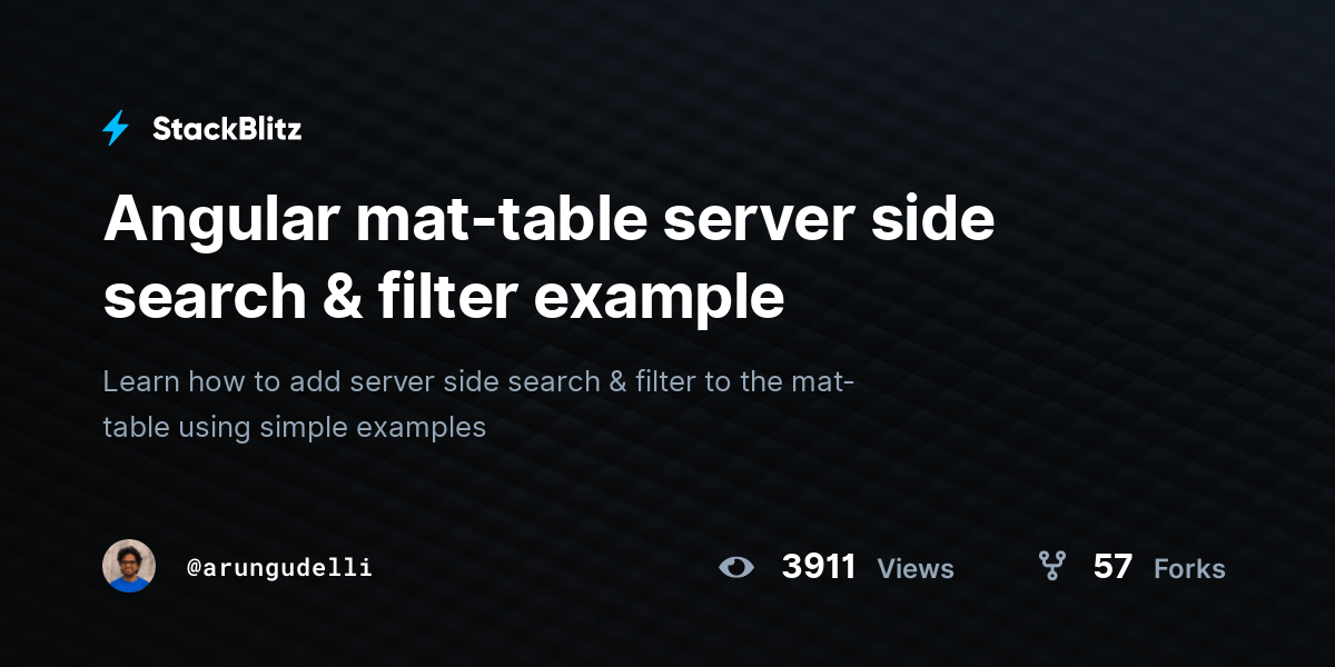 Angular mattable server side search & filter example StackBlitz Mat Table Server Side Filter I managed to get sorting and pagination working. It is very efficient when we are dealing with large data. Mat Table Server Side Filter.
