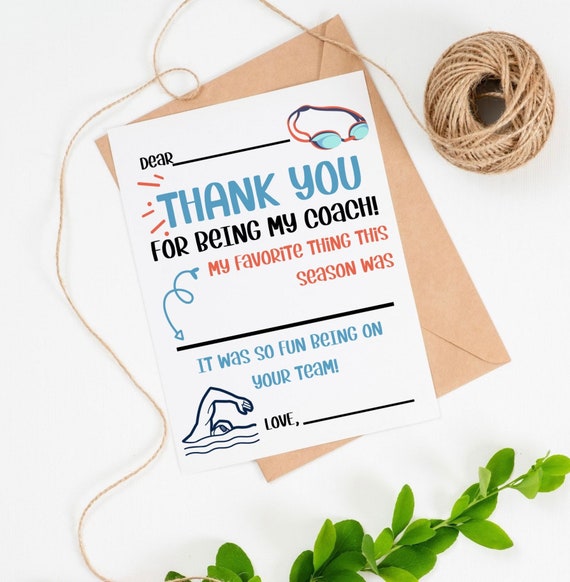 Swim PRINTABLE Thank You Card for Coach INSTANT DOWNLOAD Etsy