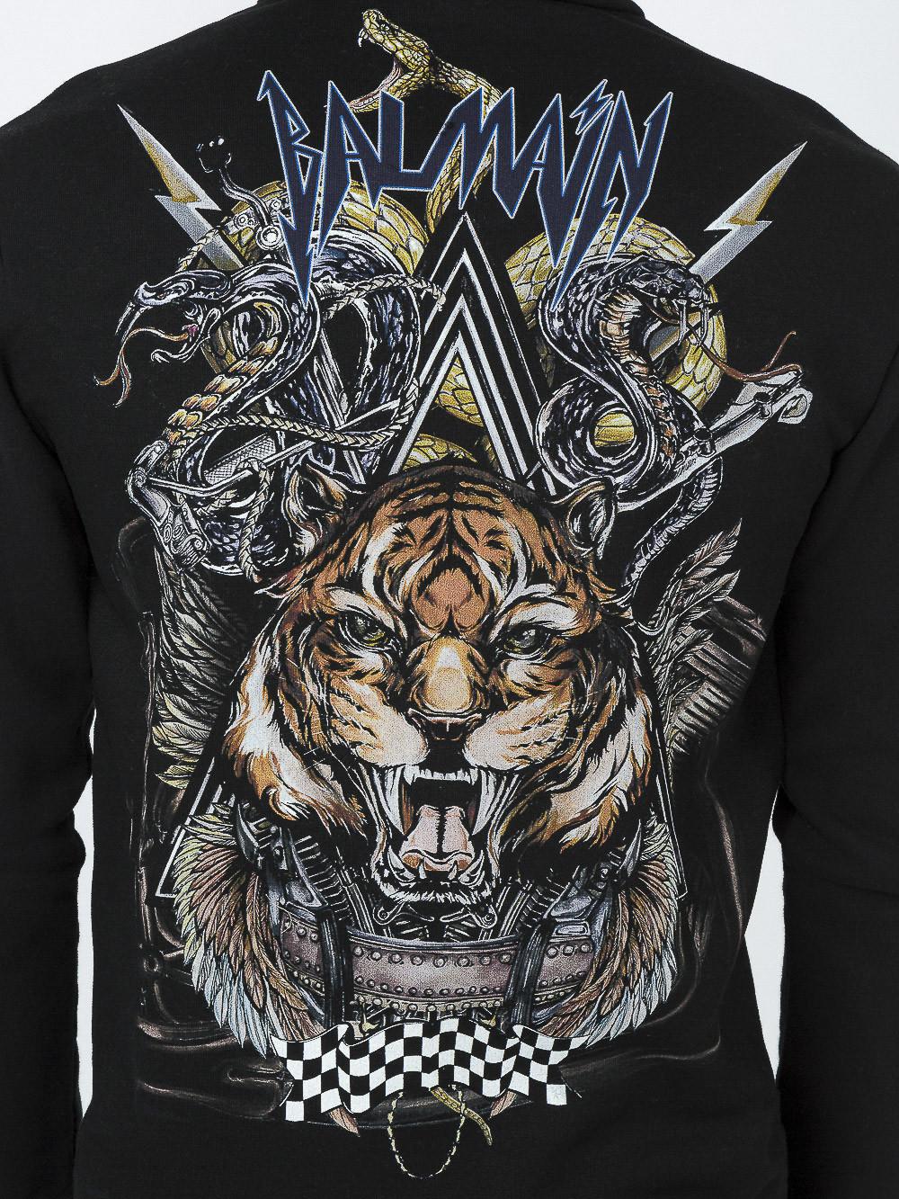 Balmain Tigerprint Hooded Cotton Sweatshirt In Black ModeSens