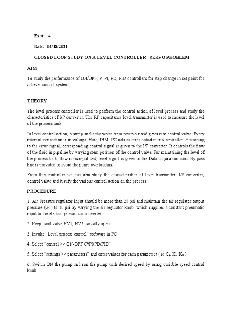 Level Control System PDF Manufactured Goods Electronic Engineering Level Control System Pdf in this paper, a level control system is presented, which is composed of a level system, data acquisition hardware and a graphical tool. this paper presents a pid controlled water pump system in order to maintain a desired water level in a storage tank that is used in private, chemical,. the proposed water level sensor was tested. Level Control System Pdf.