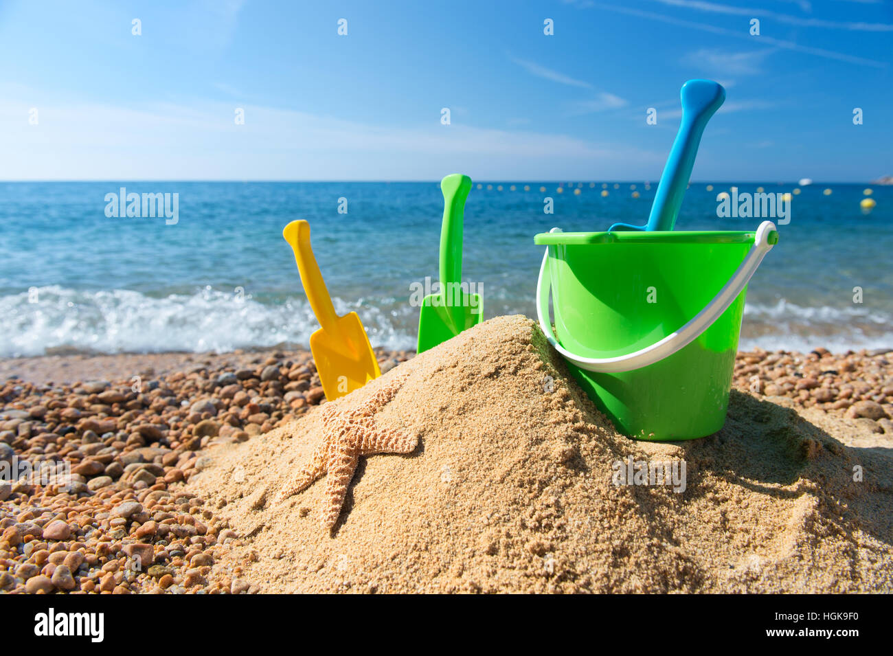 Family vacation with toys in the sand Stock Photo Alamy