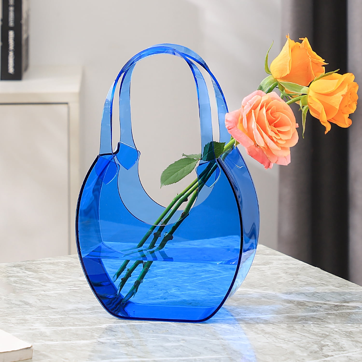 PORPAN Purse Vase, Bag Vase for Flowers, Blue Acrylic Vase, Modern