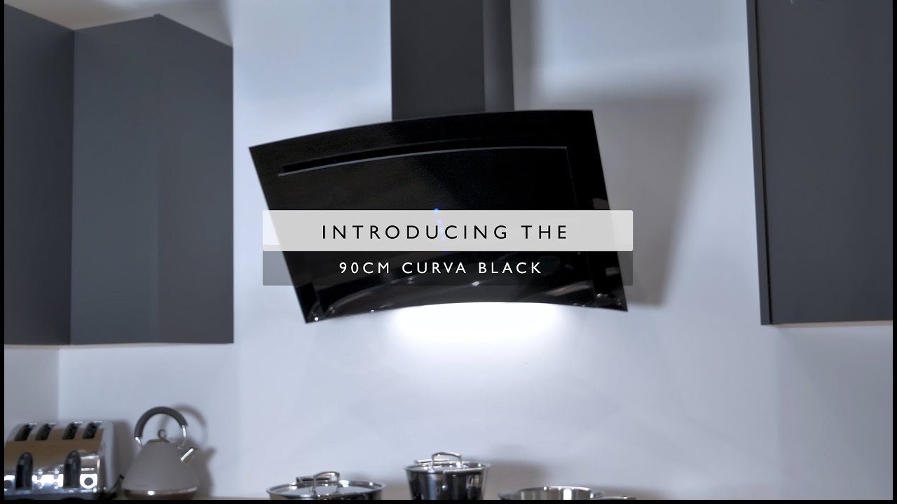 90cm Curved Black Glass Angled Cooker Hood YouTube