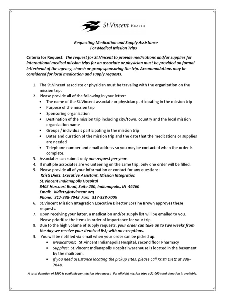 Requesting Medical Mission Trip Medication and Supplies PDF