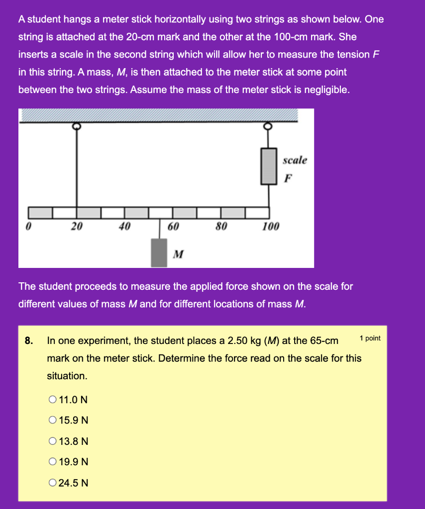 Solved A student hangs a meter stick horizontally using two