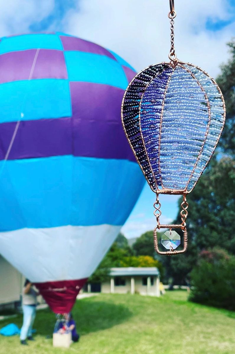Rainbow hot air balloon with woven copper wire basket by Lyn Haigh 2014 Suncatchers Hot Air Ballooning This is because the heating of the earth during the day creates. Hot air balloons fly when winds are most stable, usually shortly after sunrise. There is always something magnificent about the freedom of going up the atmosphere in a. Suncatchers Hot Air Ballooning.