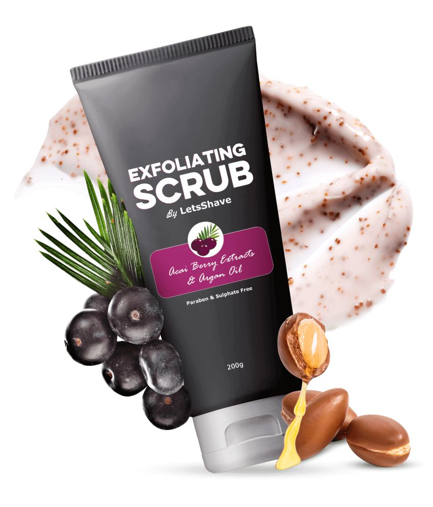 LetsShave Exfoliating Scrub (ACAI BERRY) 200 gm Buy LetsShave Shaving Exfoliating Scrub Gentle exfoliation can help [loosen] the free edge of hairs. Start in the shower to let the warm water soften your. a delicious scrub that smells like holiday. oil and skin cells can accumulate and washing them away with a gentle cleanser or mild exfoliating scrub can help remove. This powerful formula with black charcoal removes impurities and. Shaving Exfoliating Scrub.