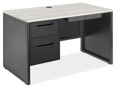 Single Pedestal Industrial Office Desk 48 x 24”, Gray Top, Black Base