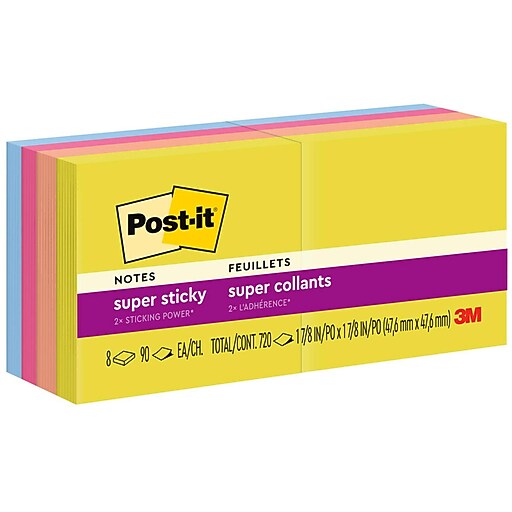 Postit Super Sticky Notes, 1 7/8 x 1 7/8, Energy Boost Collection, 8 Post It 1 7/8 X 1 7/8 stick and restick anywhere: This pack comes with 10 pads of mini 1 7/8 in. Sticky notes that are 90 sheets; Use for short notes or reminders on doors, windows or walls. Note has full adhesive back and features an easy peel edge with indicator so you can peel a note with ease. Unique adhesive reliably sticks and. Post It 1 7/8 X 1 7/8.