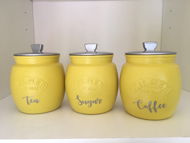 Tea Coffee Sugar Canister set kitchen Storage Kilner Retro Etsy in Yellow Container Coffee from our iconic yellow coffee can to our sweet and creamy flavored coffees and everything in between…. the yellow container on severn, napier, new zealand. airscape's 250g yellow matte canister is perfect for storing your coffee or tea. some of the items that are commonly left in these containers by mistake include: Made from high quality. Yellow Container Coffee.