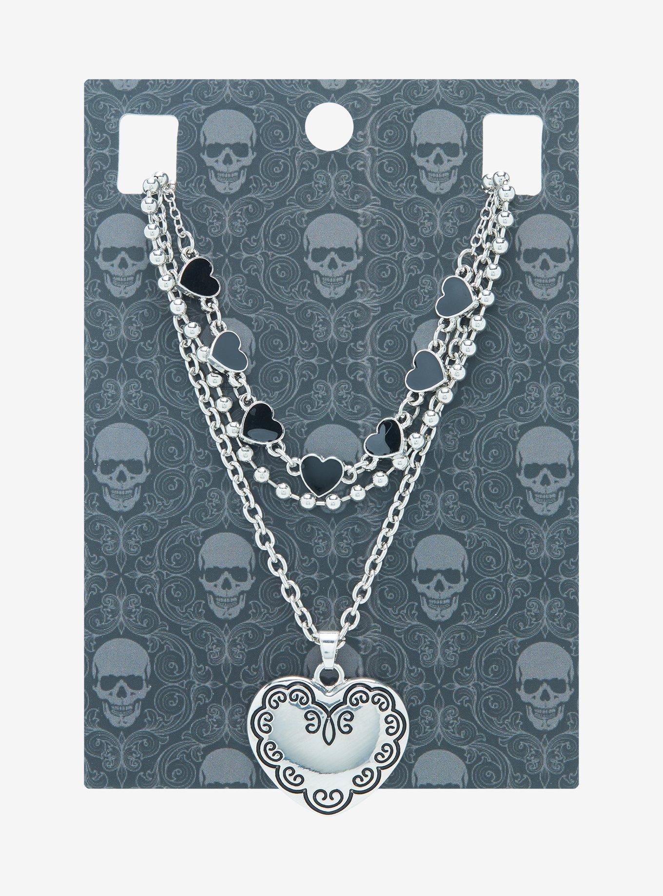 Heart Ball Chain Necklace Set Hot Topic