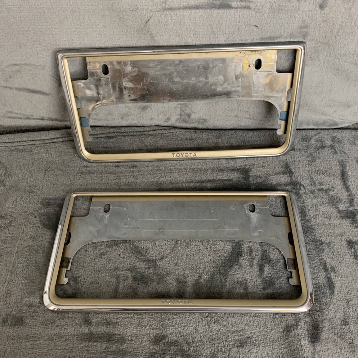 【目立った傷や汚れなし】トヨタ純正 プレステージ ゴールド メッキ ナンバープレート ナンバーフレーム TOYOTA ロゴ入り 08407
