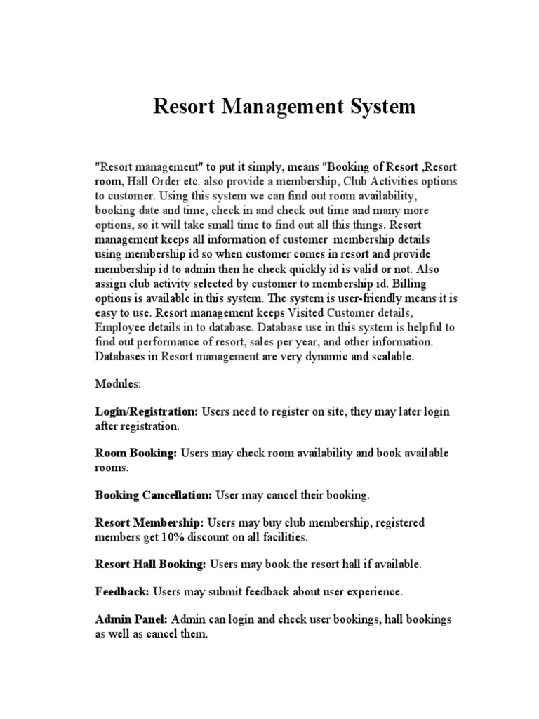 Resort Management System PDF