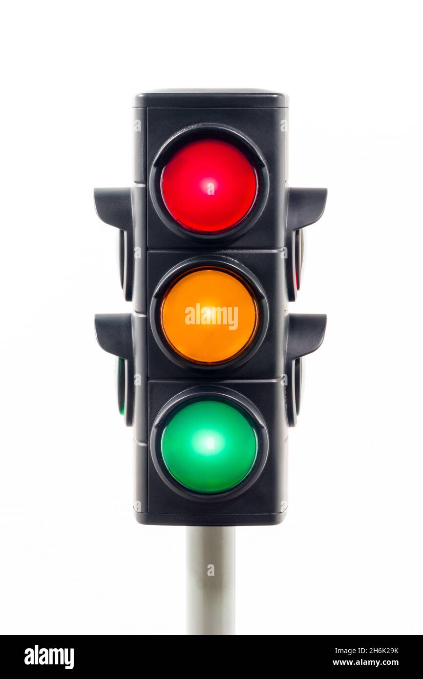 Illuminated traffic light showing red, amber and green signals Stock Amber Traffic Signal Light Means You may go on only if the amber appears after you have crossed the stop line or are so close to it that to pull up might cause an accident”. “amber means ‘stop’ at the stop line. The highway code states that: When the amber light appears, cyclists should prepare to stop and evaluate the situation. Amber traffic light when. Amber Traffic Signal Light Means.