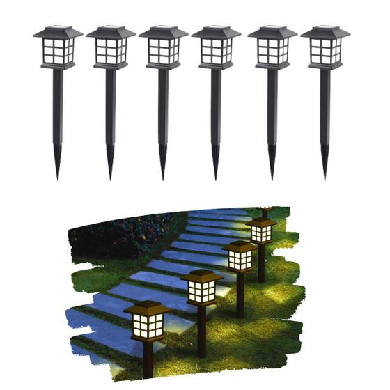 6 Luminárias Solar Luz Branco Quente Espeto Estaca Casinha Oriental De