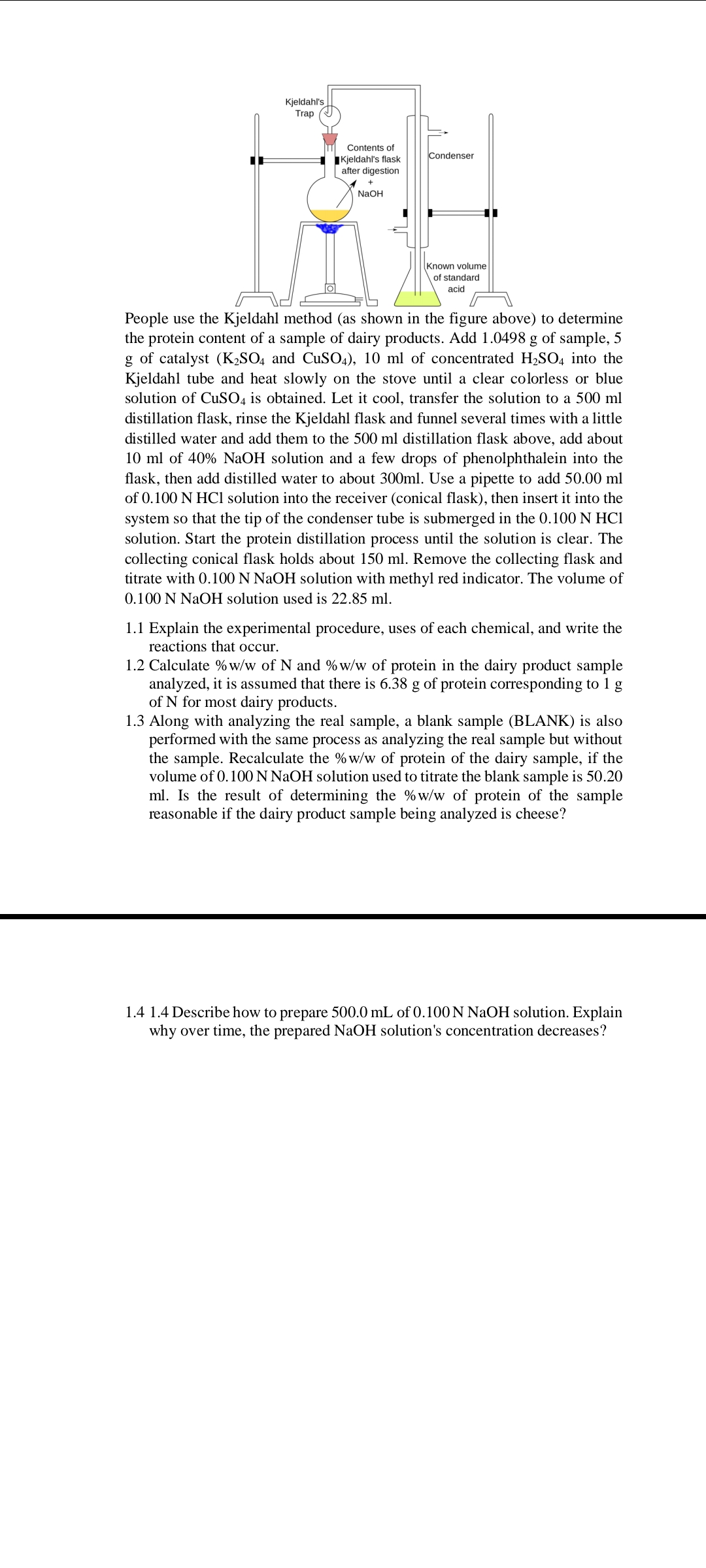 Solved People use the Kjeldahl method (as shown in the Kjeldahl Method For Liquid Sample The kjeldahl method may be broken down into three main steps: For longer than 100 years the kjeldahl method has been used for the determination Sample digestion, distillation, and ammonia determination (titration being the. The kjeldahl method consists of three steps: For longer than 100 years the kjeldahl method has been used for the. This method describes procedures for the. Kjeldahl Method For Liquid Sample.