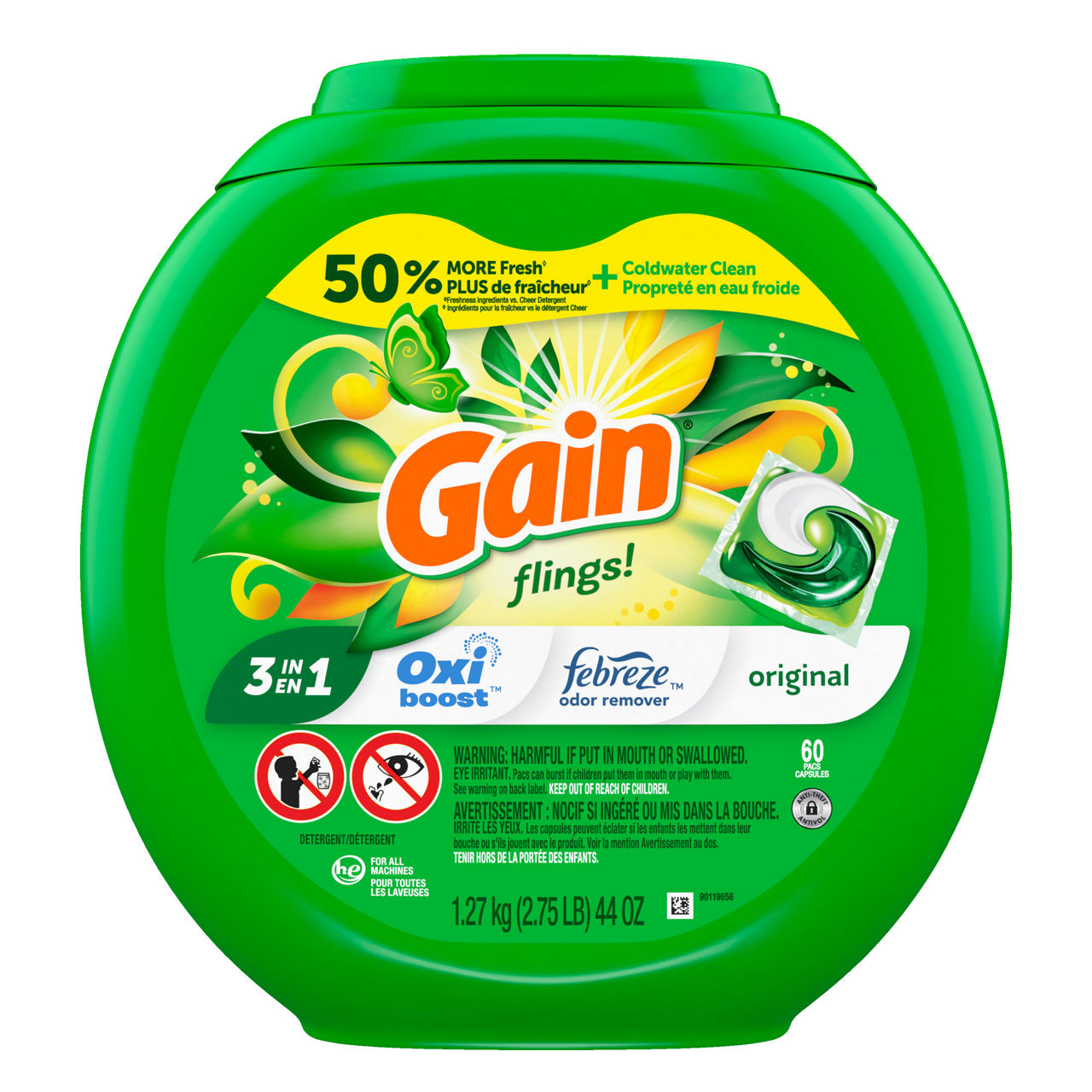 Gain Gain flings! Liquid Laundry Detergent Soap Pacs, HE Compatible, 60