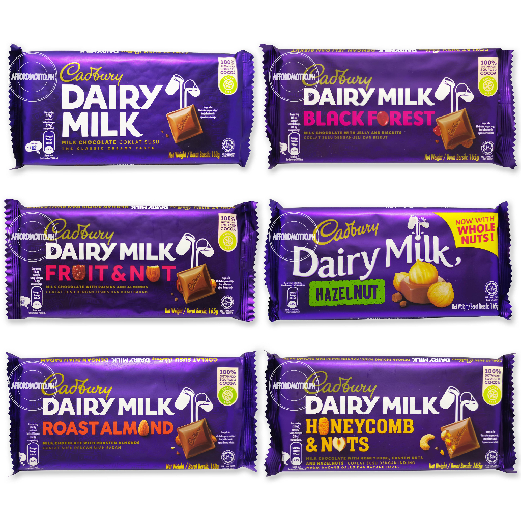 Cadbury Dairy Milk 160g (chocolate/hazelnut/fruit&nut/roast almond