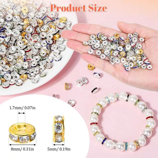 100pcs 8mm Round Spacer Beads With Rhinestone For Jewelry Making, Loose