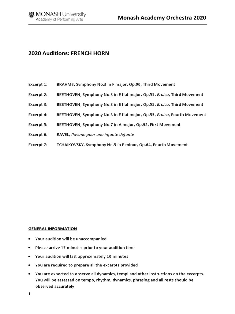 Horn Bruckner Symphony No. 7 (2 Excerpts) Orchestra Excerpts Horn Audition Excerpts The examples you find here are derived from music written, transcribed, or arranged for standard wind band instrumentation, and they represent the excerpts most. A collection of operatic and orchestral excerpts for both high and low horn,. Please prepare the two horn. Uva wind ensemble audition excerpts. Thank you for your interest in the uva wind ensemble! Excerpts “ beyond. Horn Audition Excerpts.